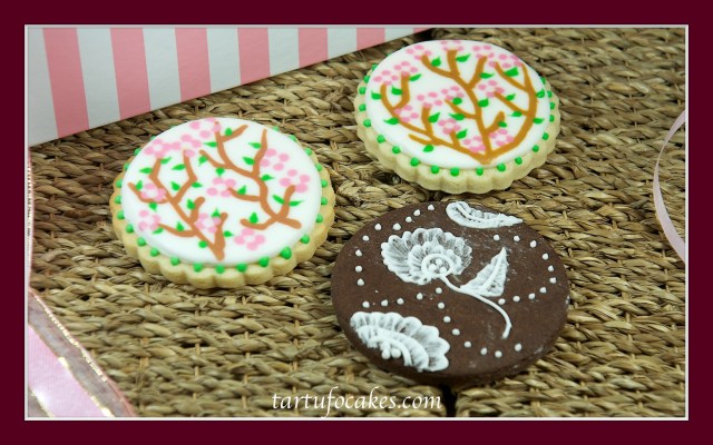 Son galletas hechas con diferentes técnicas, como wet on wet, brush embroidery, transfer, entramados, flores de glasa, lace embroidery…. técnicas avanzadas de nombres muy rimbombantes, pero que con una maestra como Nani al lado, se vuelven accesibles, y hasta parece que fáciles (luego al hacerlo en casa te das cuenta de que no lo son tanto, claro)