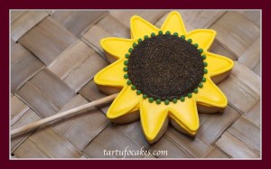 Hemos añadido un nuevo elemento a nuestro repertorio «florido» con estos girasoles que hemos encontrado buceando por Sugarbelle. Ella utiliza «sanding sugar» una especie de azúcar de grano más grueso y de colores, pero nosotros hemos utilizado azúcar normal y corriente, teñido de marrón.