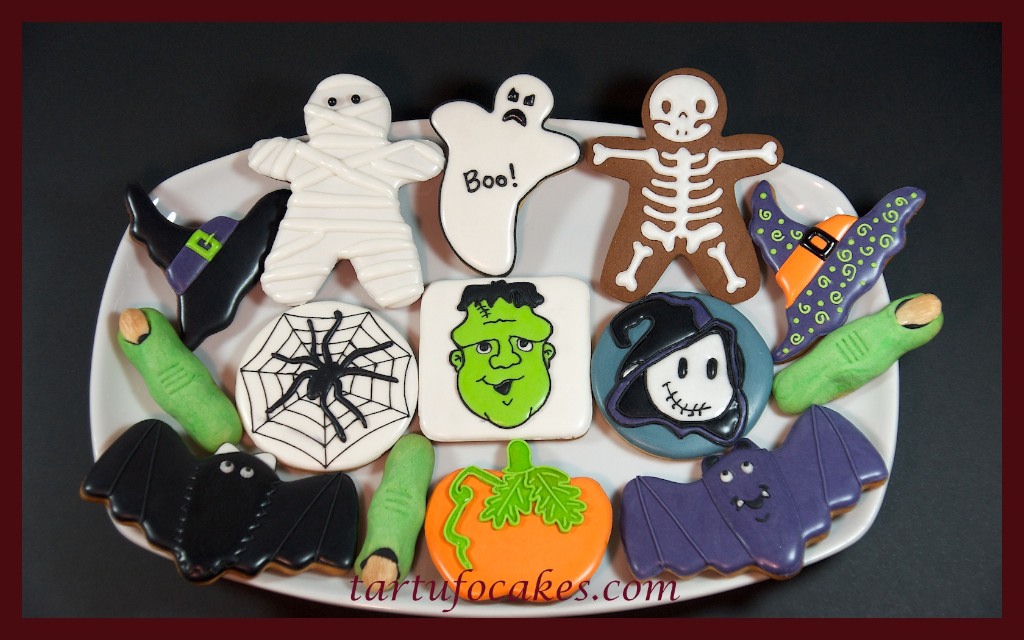 Aquí están nuestras galletas de Halloween. Normalmente estamos acostumbrados a trabajar sobre muchas galletas de pocos modelos, pero esta vez hemos hecho lo contrario, una o dos galletas de muchos modelos.